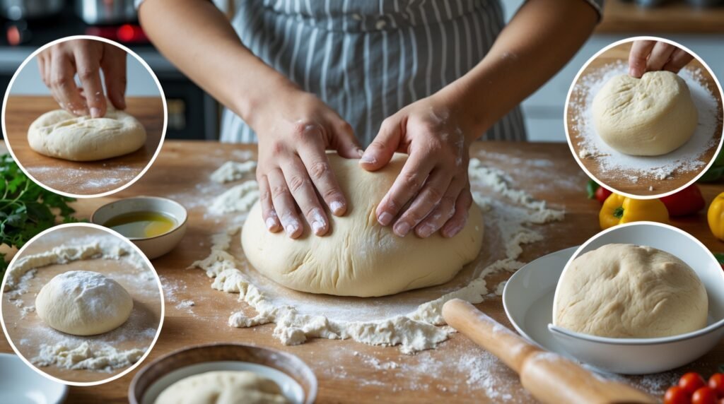 Oleskan minyak zaitun extra virgin di telapak tangan sebelum menguleni. Teknik ini memberikan dua keuntungan: mengurangi lengket dan menambah aroma khas Mediterania pada pizza.